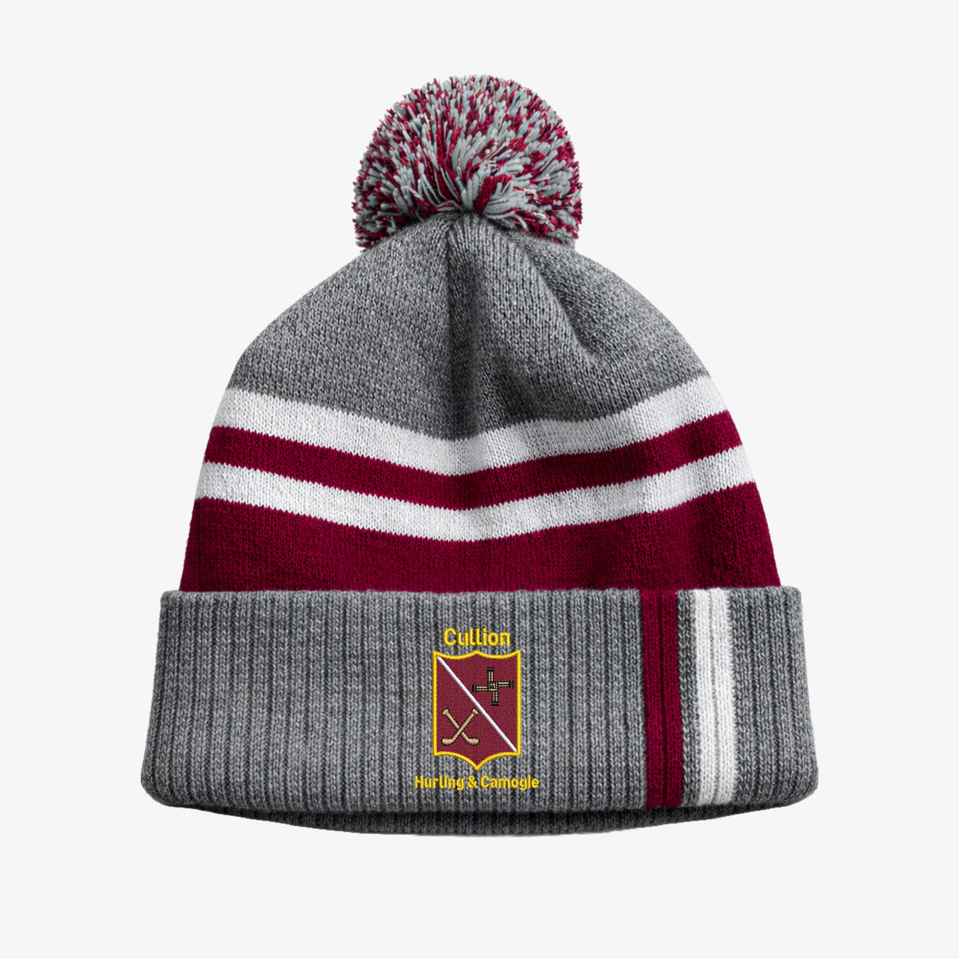 Cullion Camogie Club KCS Champion Beanie - Dark Grey / Maroon / White