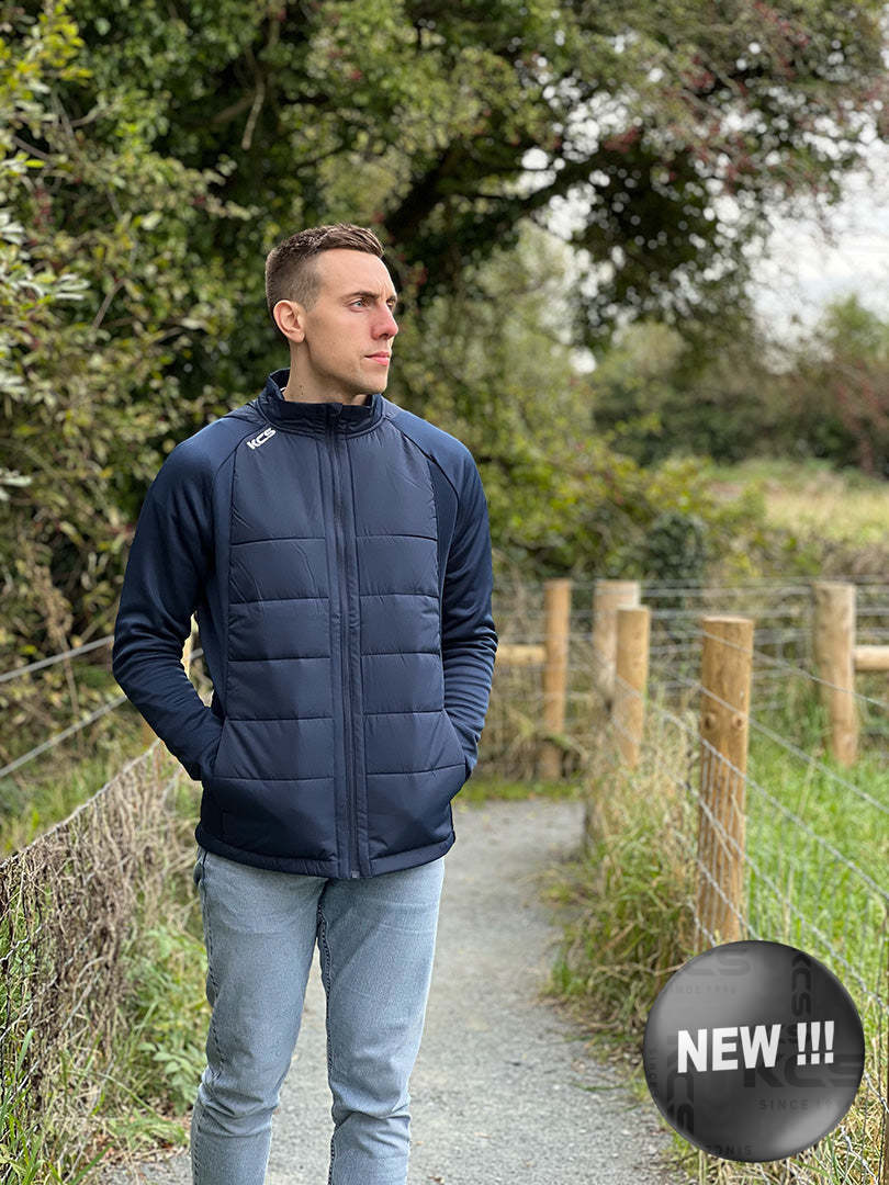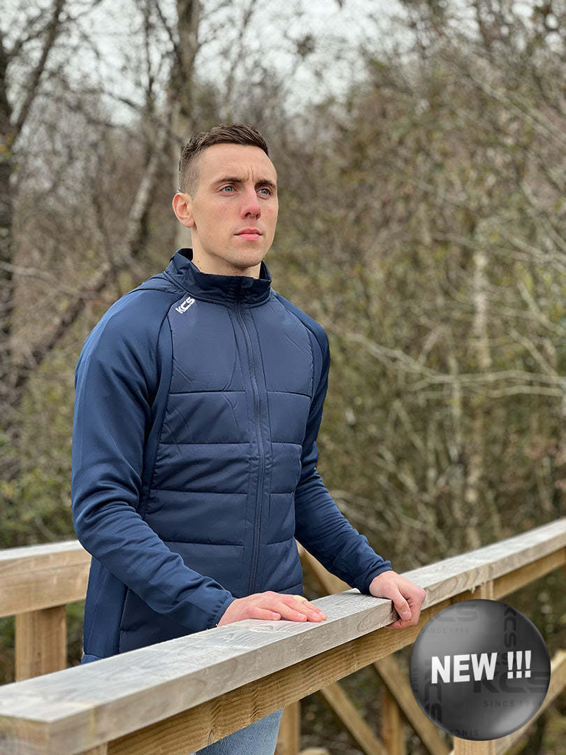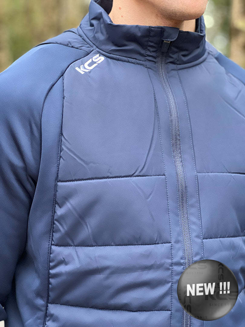 KCS Derra Hybrid Jacket / Tight Fit Style Padded hybrid jacket Quilted front & back Lightweight Softshell sleeves Two Zipped Side pockets KCS Branding Modern Pro Fit Model is wearing size XL.